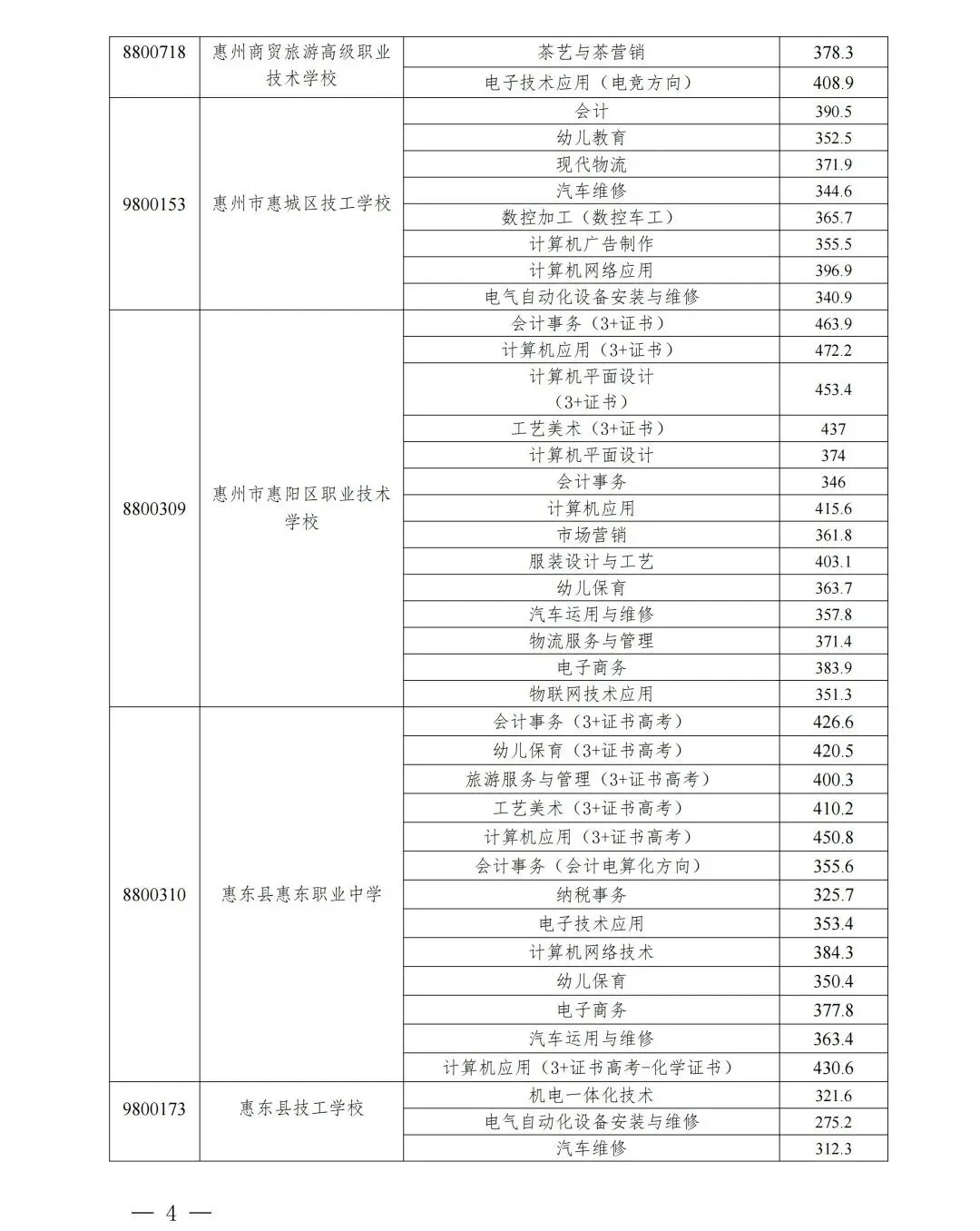 2022-2025年惠州中考录取分数线汇总(中职版)