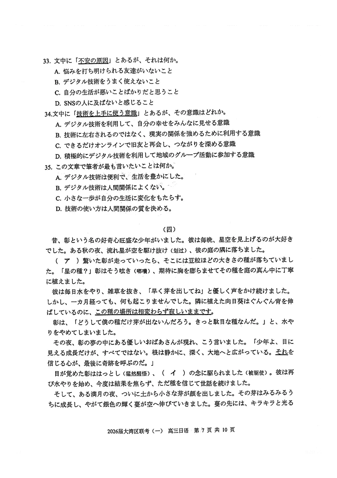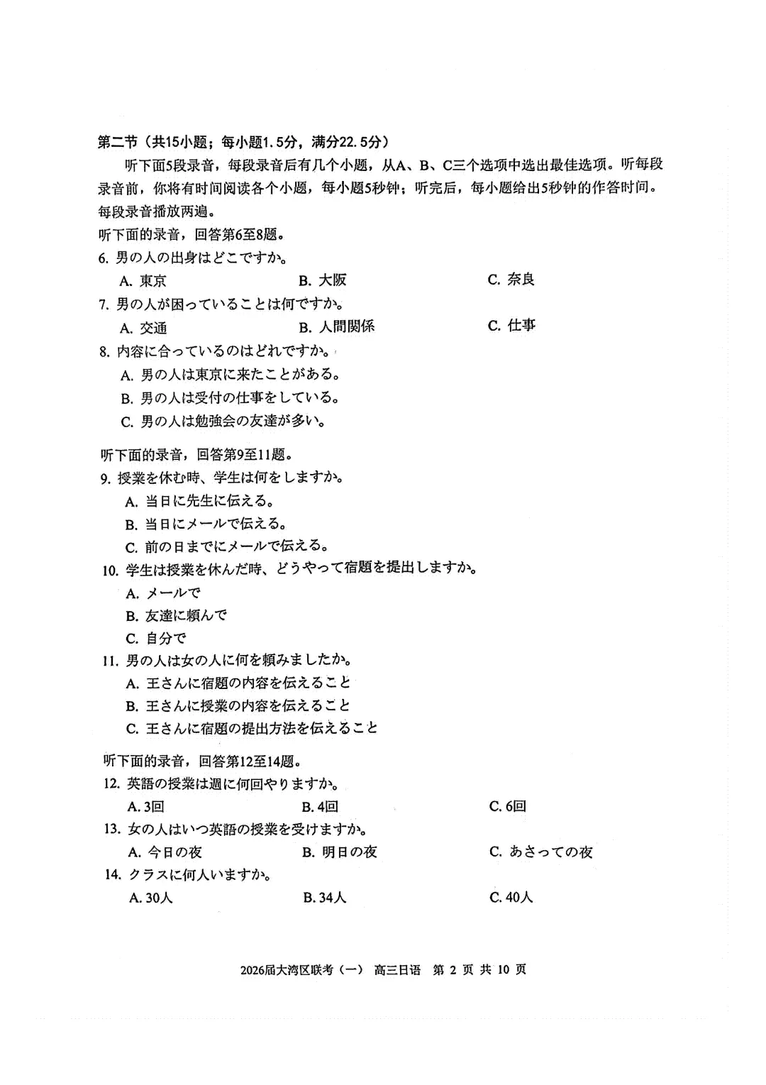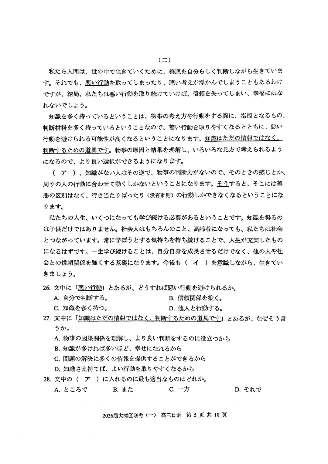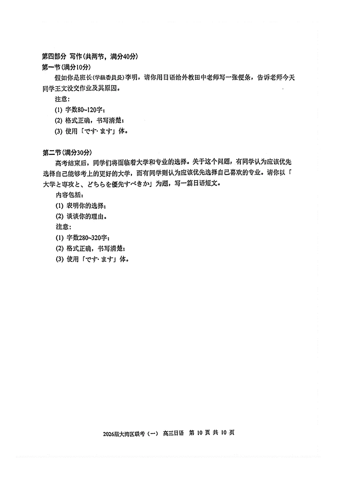 >26届大湾区普通高中毕业年级联合模拟考试一|作文(便条+大学と専攻と、どちらを優先すべきか)