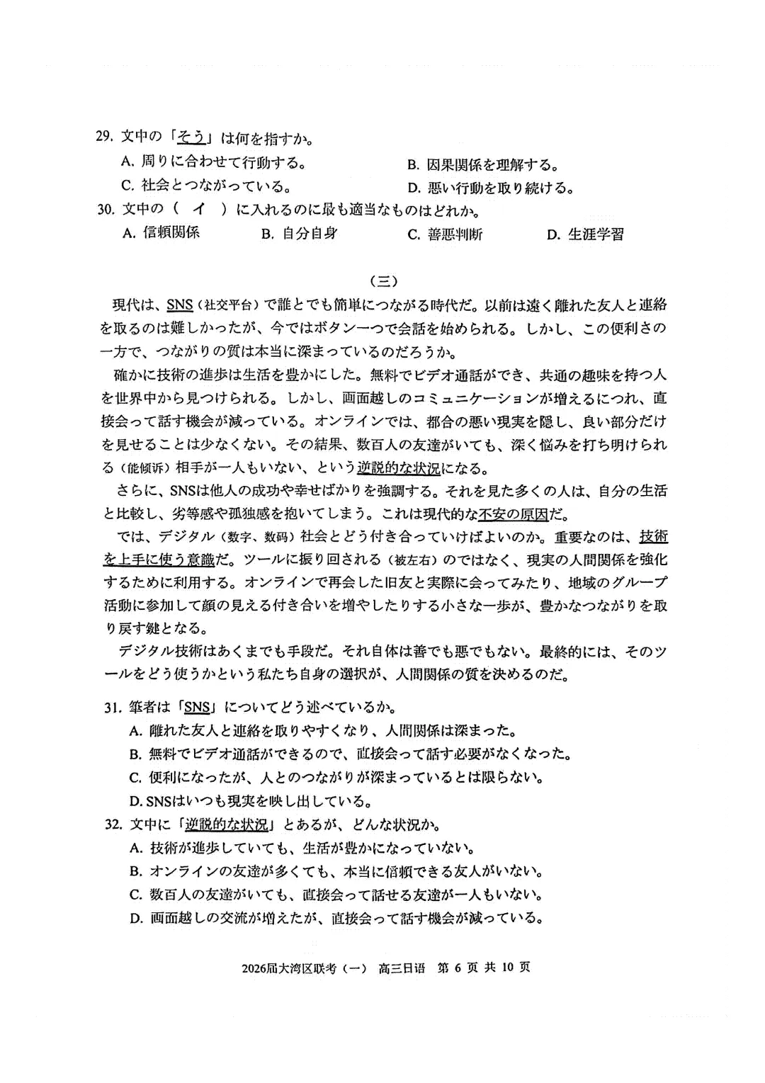 26届大湾区普通高中毕业年级联合模拟考试一|作文(便条+大学と専攻と、どちらを優先すべきか)