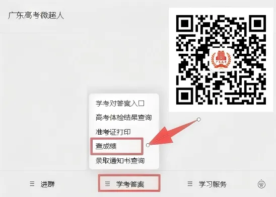 考生可在微信搜索并进入“广东招考在线”小程序,点击“成绩查询”,选择考生对应的考试类别,按指引查询考试成绩。