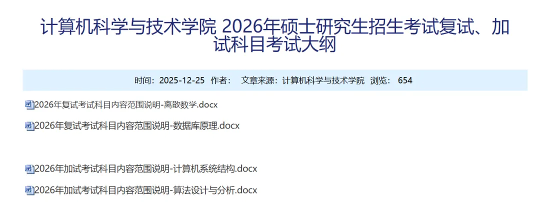 哈尔滨工程大学计算机科学与技术学院发布了2026年硕士研究生招生考试复试、加试科目考试大纲。