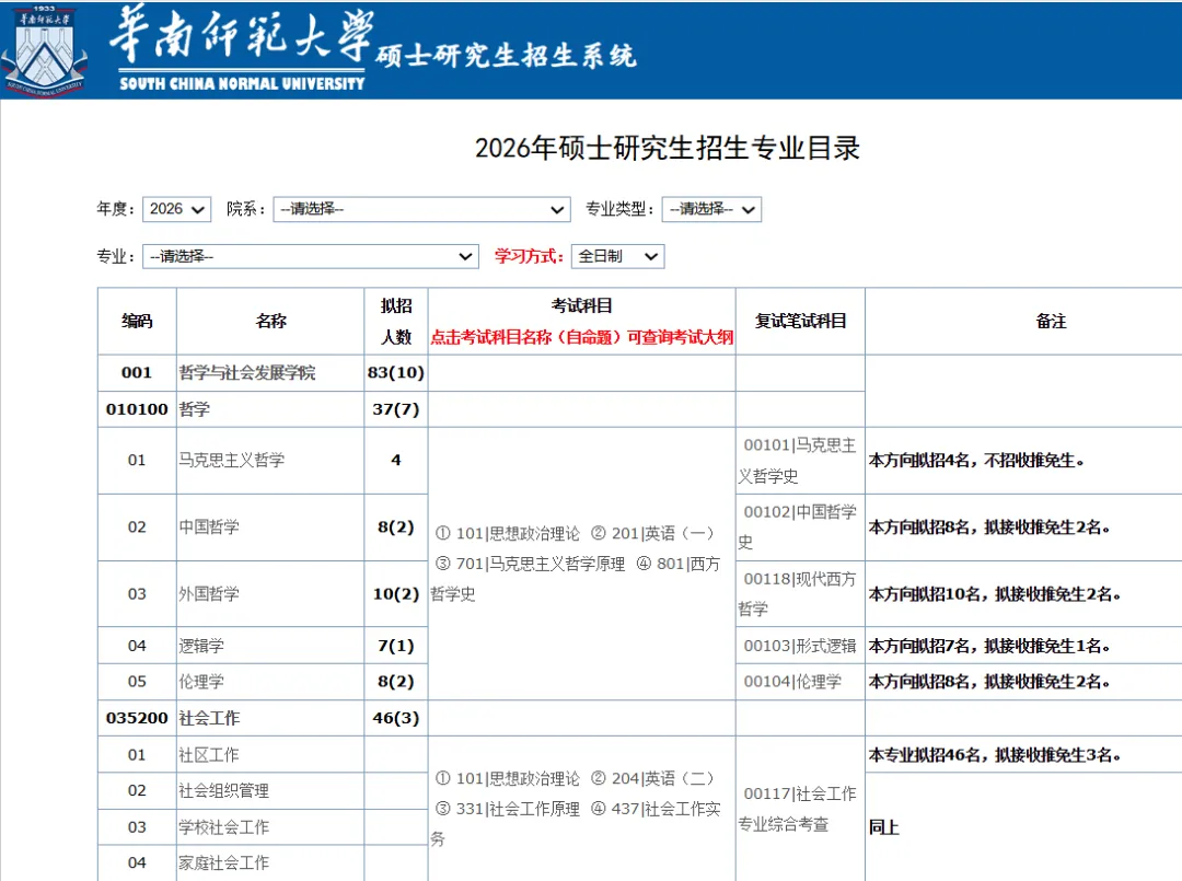 华南师范大学研究生院发布了 2026 年硕士研究生招生考试复试、加试科目相关要求。