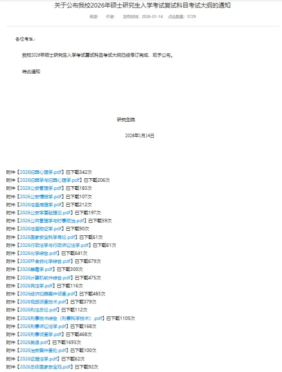 中国刑事警察学院几天前考试复试科目考试大纲已经修订完成,现予公布。