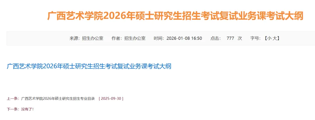 广西艺术学院发布了2026年硕士研究生招生考试复试业务课考试大纲。