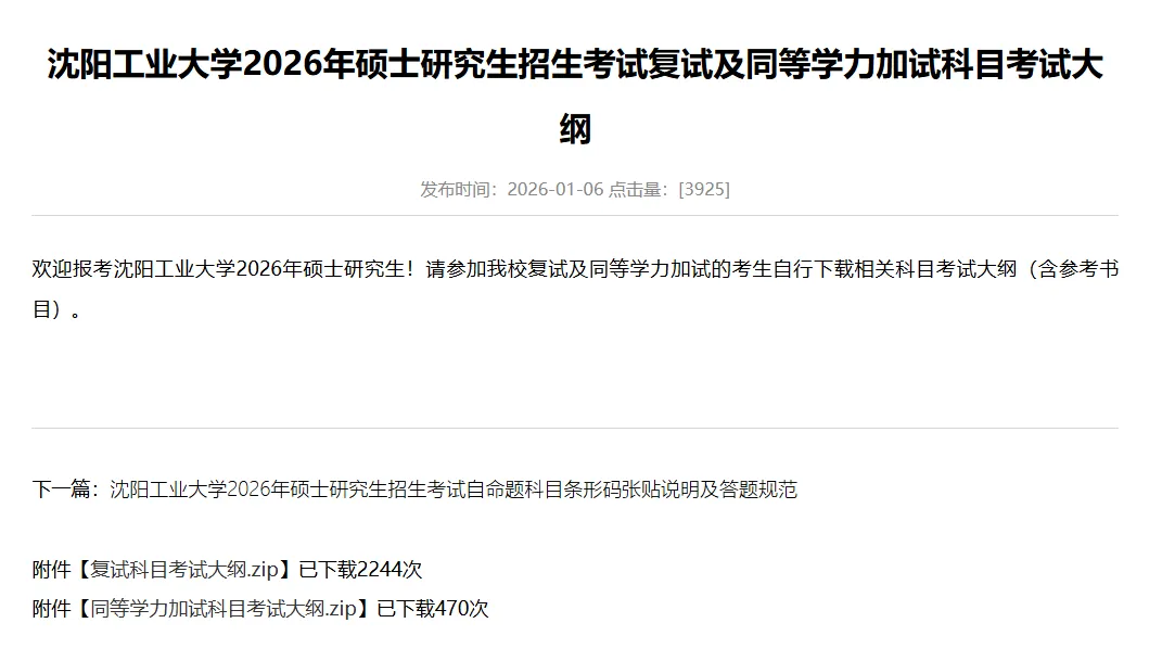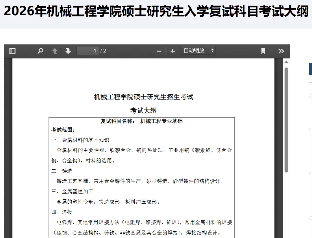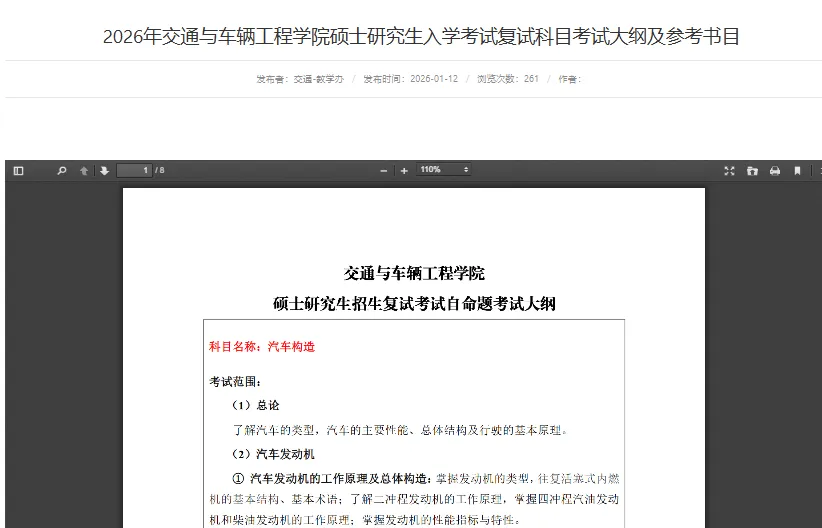 大连交通大学研究生工作处发布了 2026 年硕士研究生招生考试复试、加试科目考试大纲。