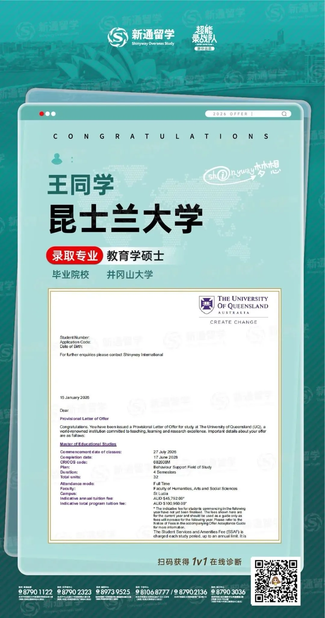 没想到这份信任很快就有了回应——昆士兰大学的有条件offer火速送达,紧接着蒙纳士大学的offer也如期而至。