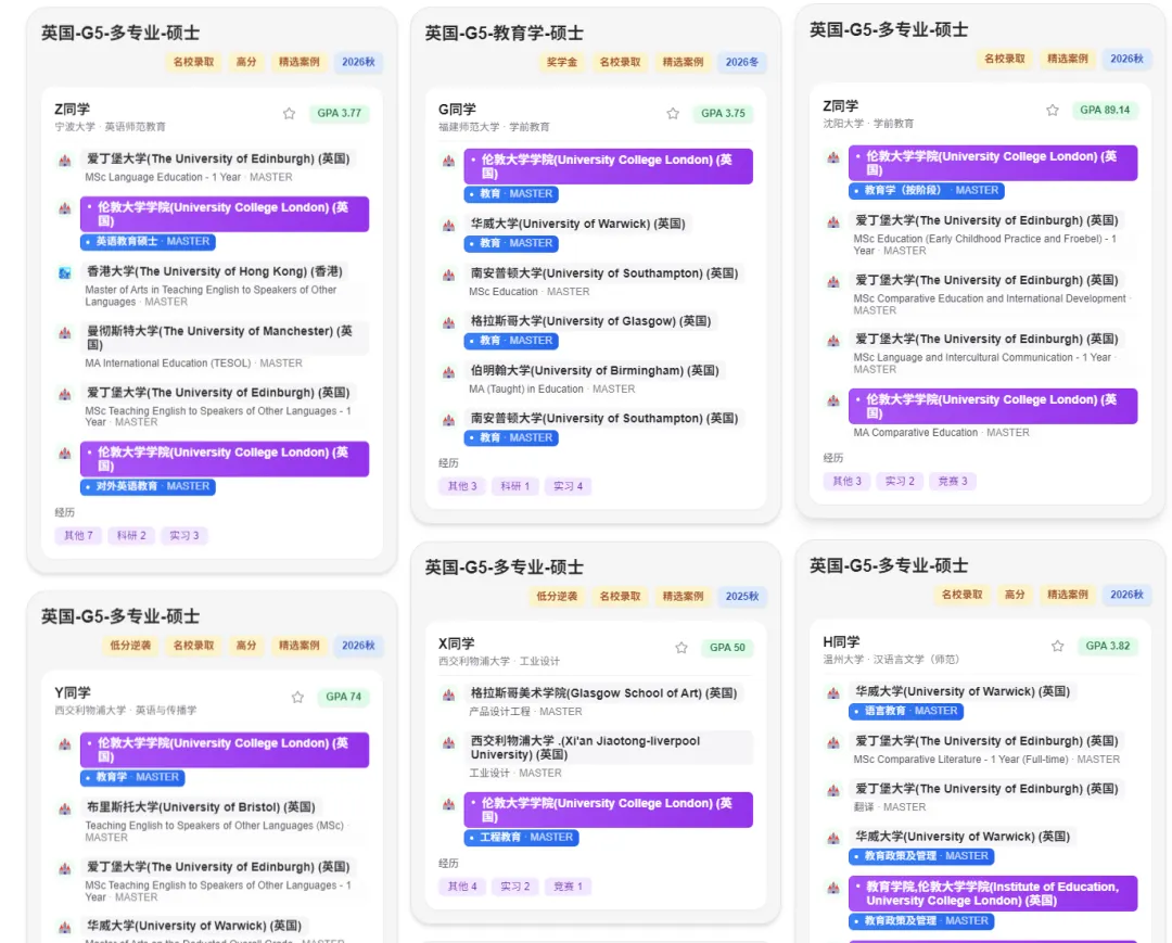 善于多维度分析、多国教育对比,帮助学生获得更好的offer。其中包括众多名校录取案例,如悉尼大学、多伦多大学、香港大学、新加坡国立大学、伦敦大学学院等。