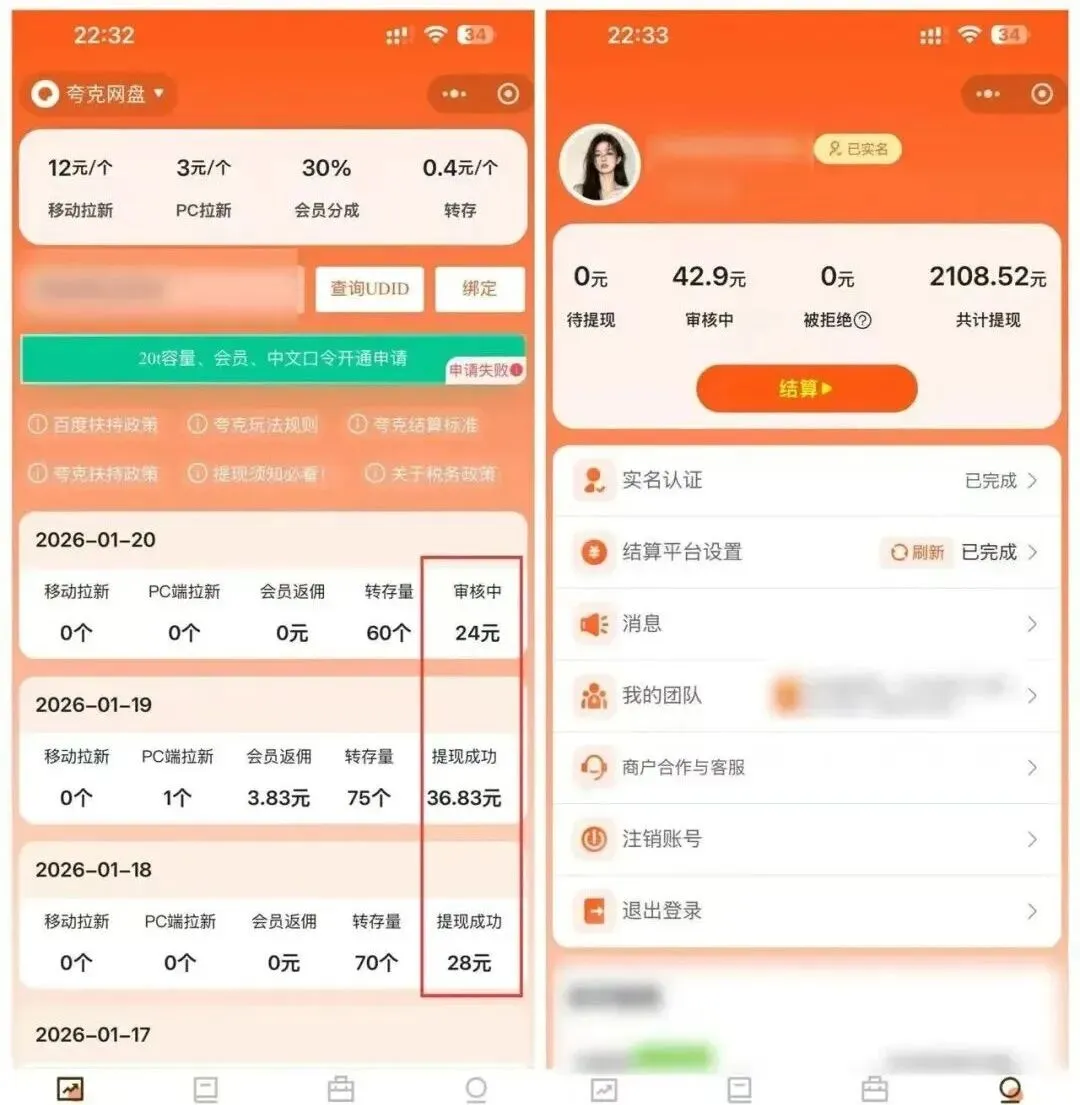 其实是靠网盘拉新获取奖励!用户保存你的资源,你就赚佣金。现在单个转存4毛5,100个转存就是45,以此类推...资料一旦上传,链接永久有效,收益就持续不断,像管道收入一样。