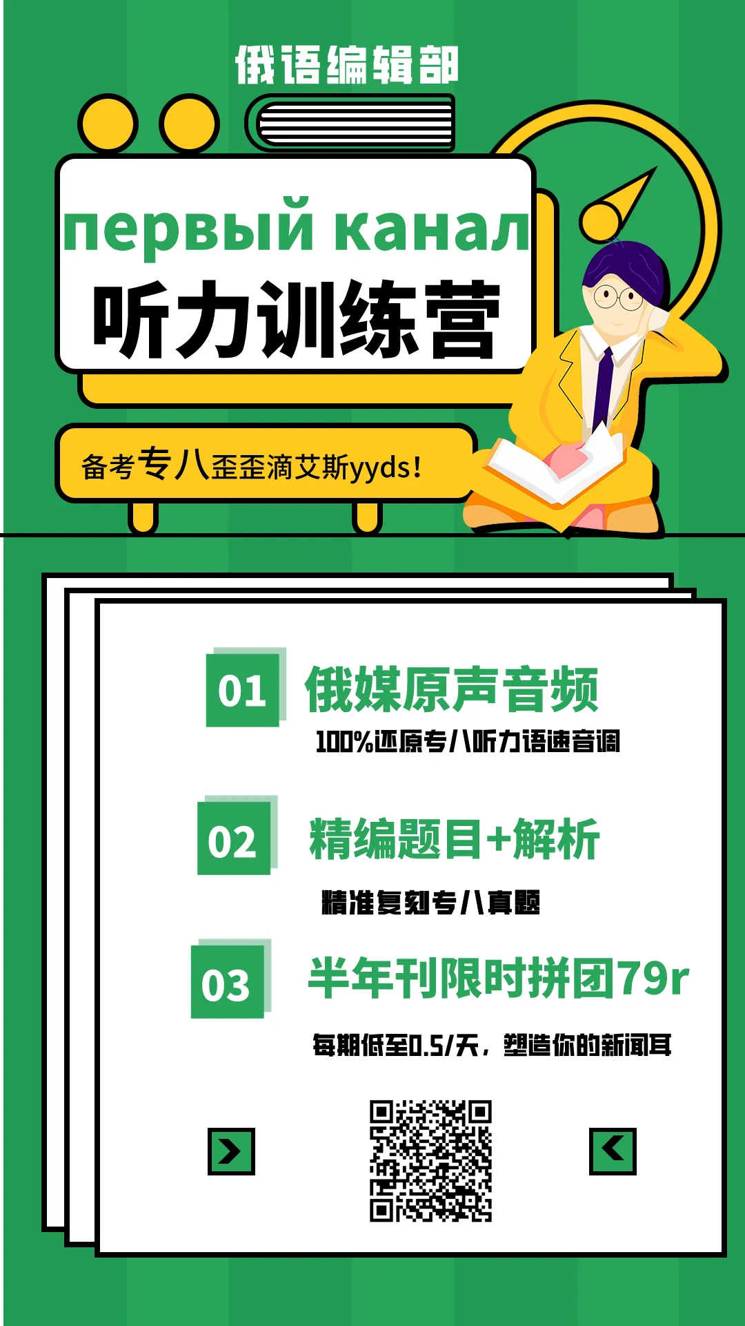 √早上8点在专属微信交流群发送听力训练笔记文档PDF(俄汉对照+听力题目+重点句式听力破解)