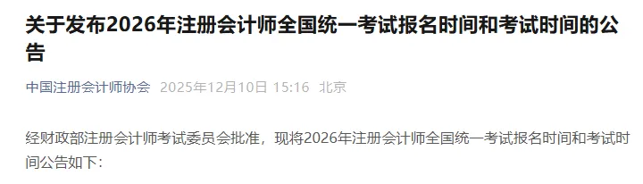 重大利好!2026年注会报名、交费和考试时间定了,这点有变!