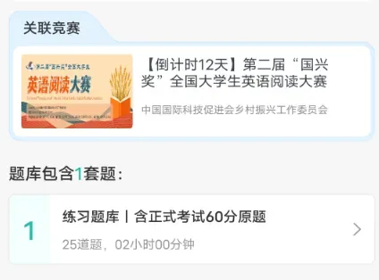 本届大赛为报名选手设置专属练习题库,现已上线大赛官网。可无限次进入练习,题库含60分正式考试原题,助力冲刺更高奖项!