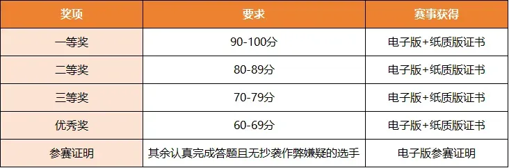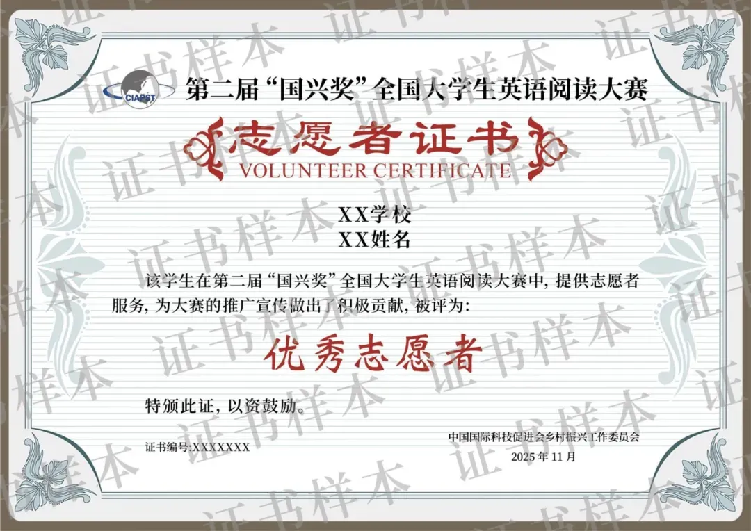 凡报名并完成参赛的选手均可获得电子版“优秀志愿者”证书一份。