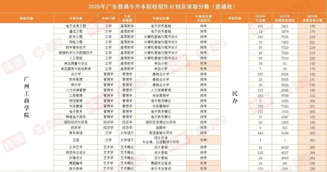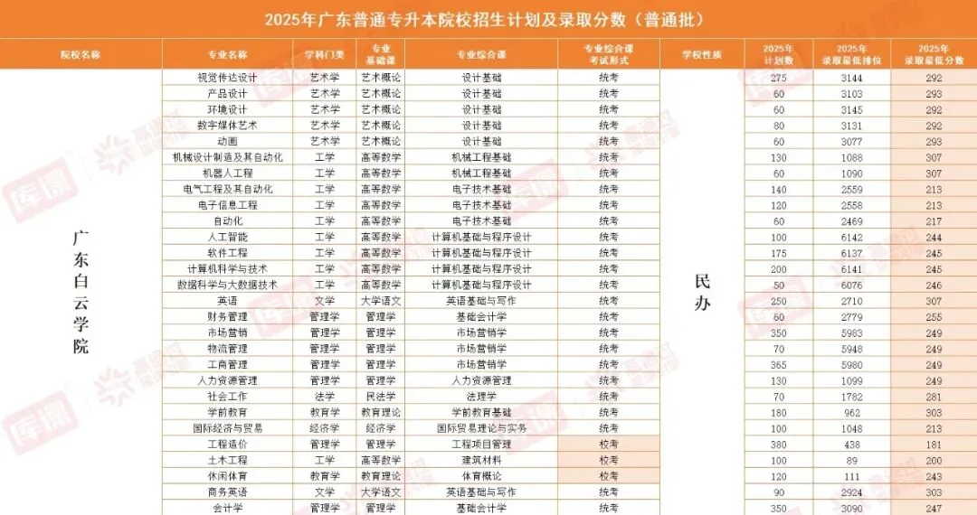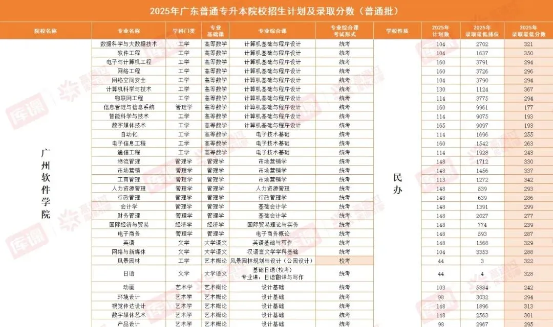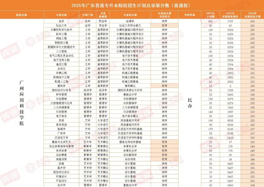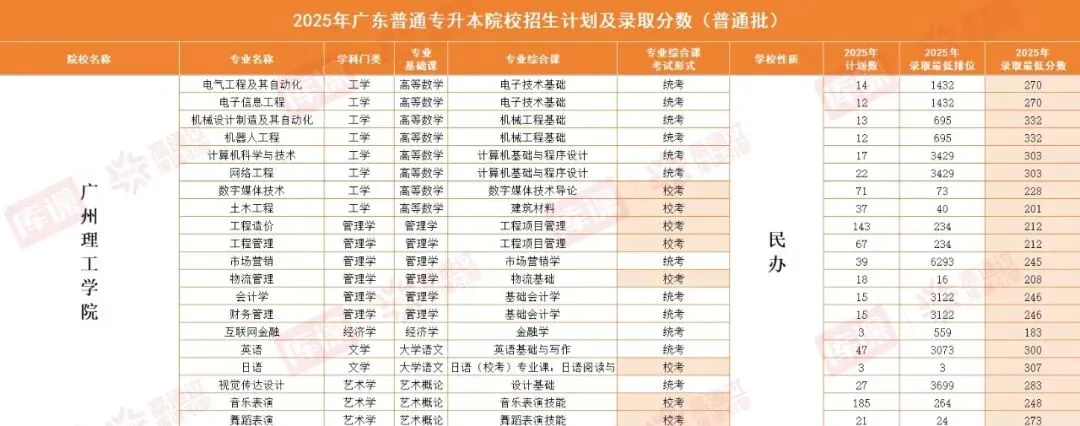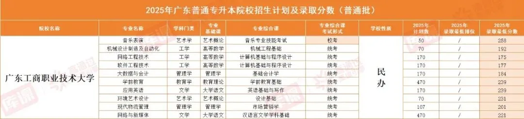 想参考一下25年的录取分数线?小库汇总了2025年广东省普通专升本各院校专业录取分数线参考汇总(普通批)。
