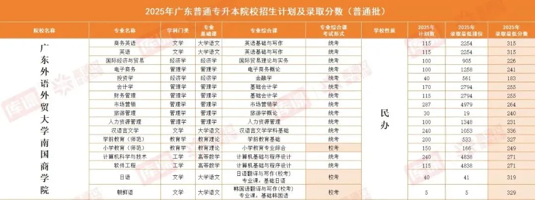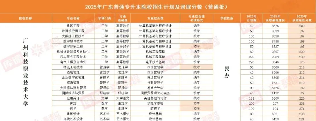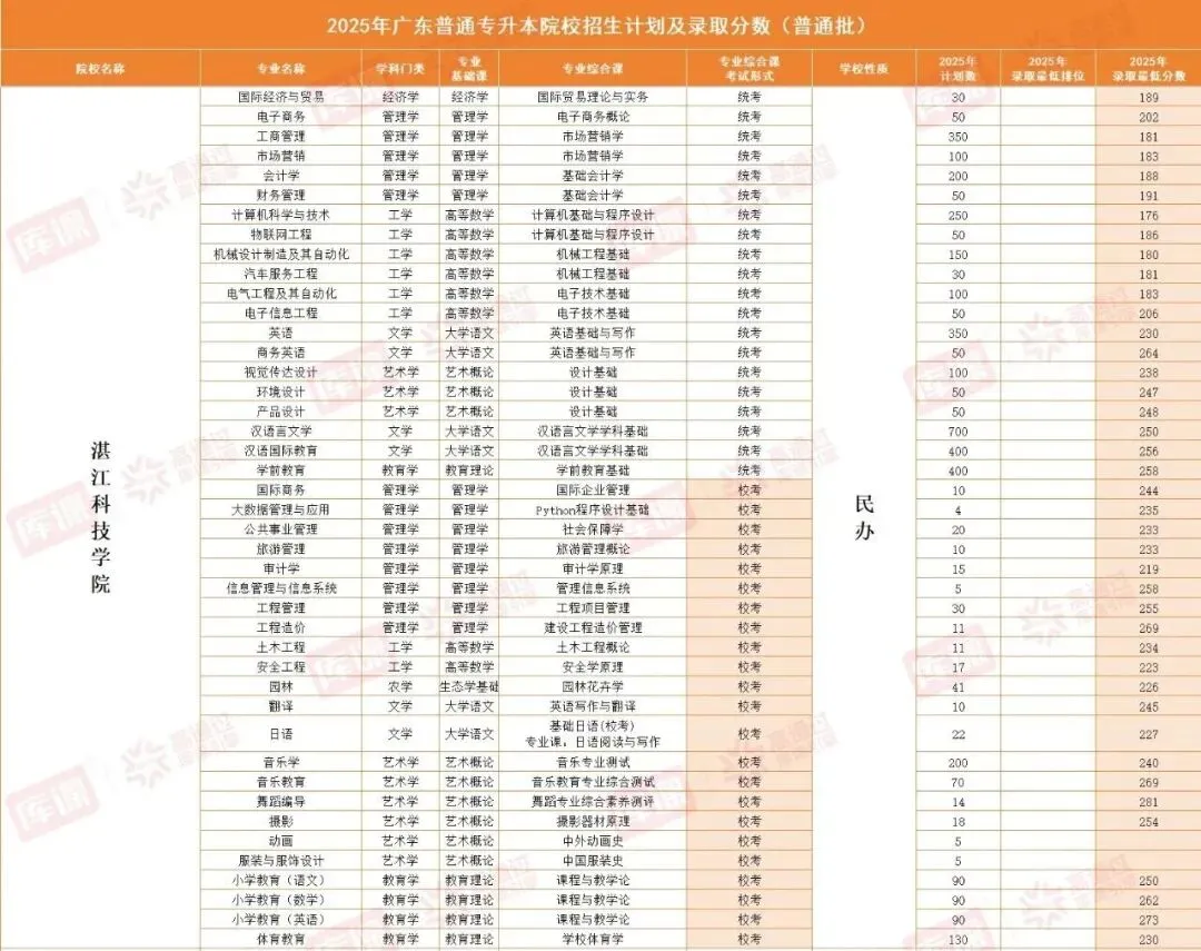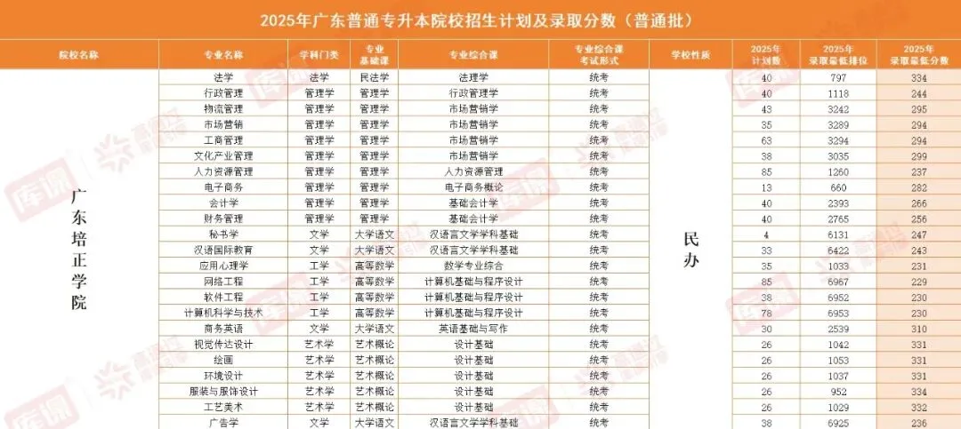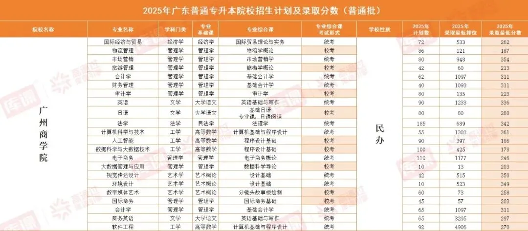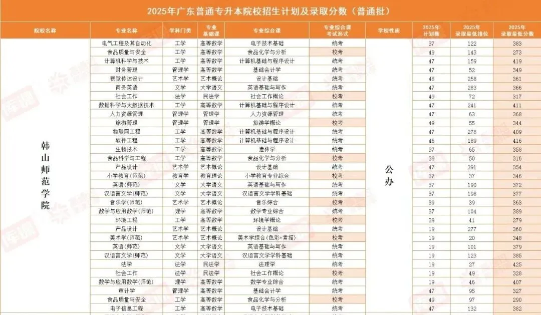 想参考一下25年的录取分数线?小库汇总了2025年广东省普通专升本各院校专业录取分数线参考汇总(普通批)。