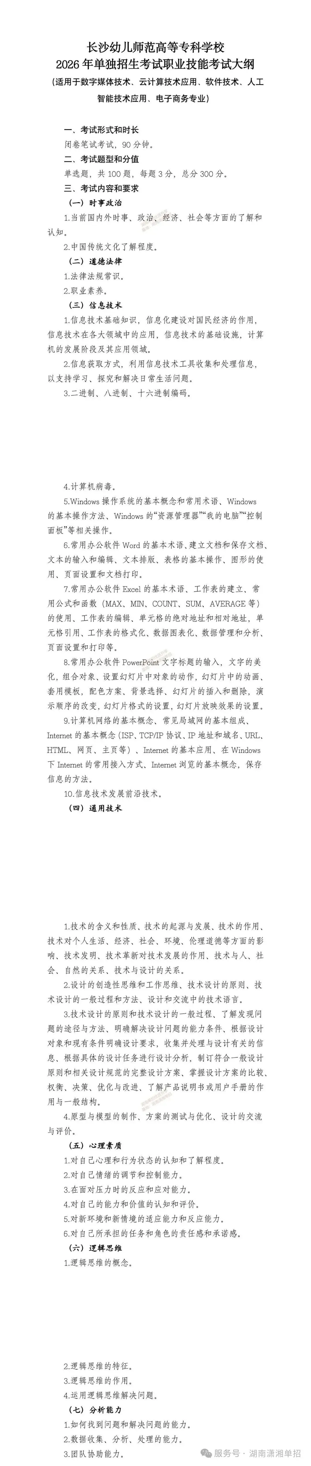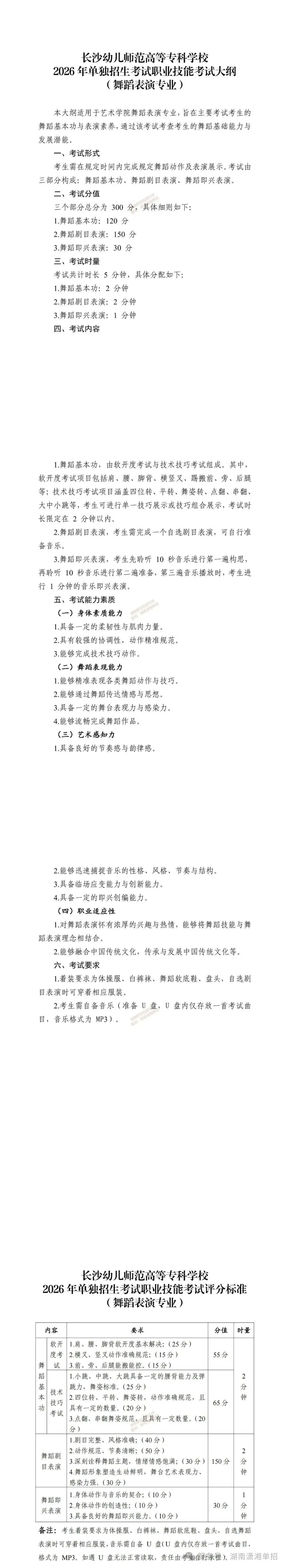 >【2026考试大纲】长沙幼儿师范高等专科学校