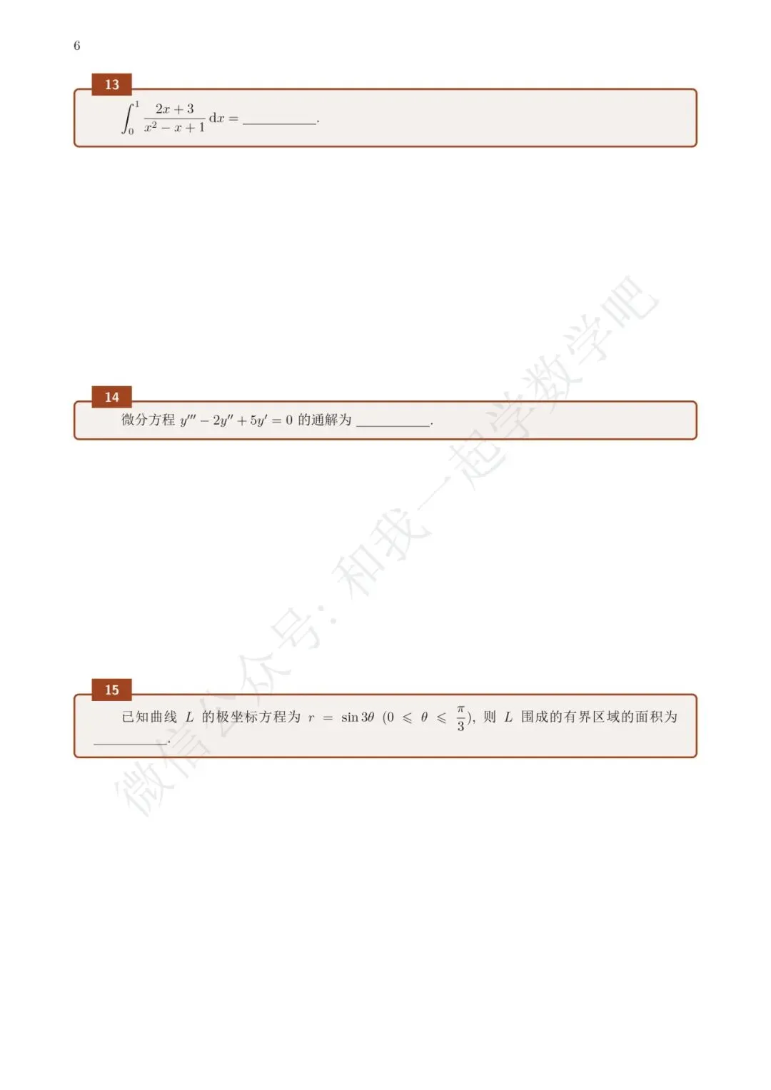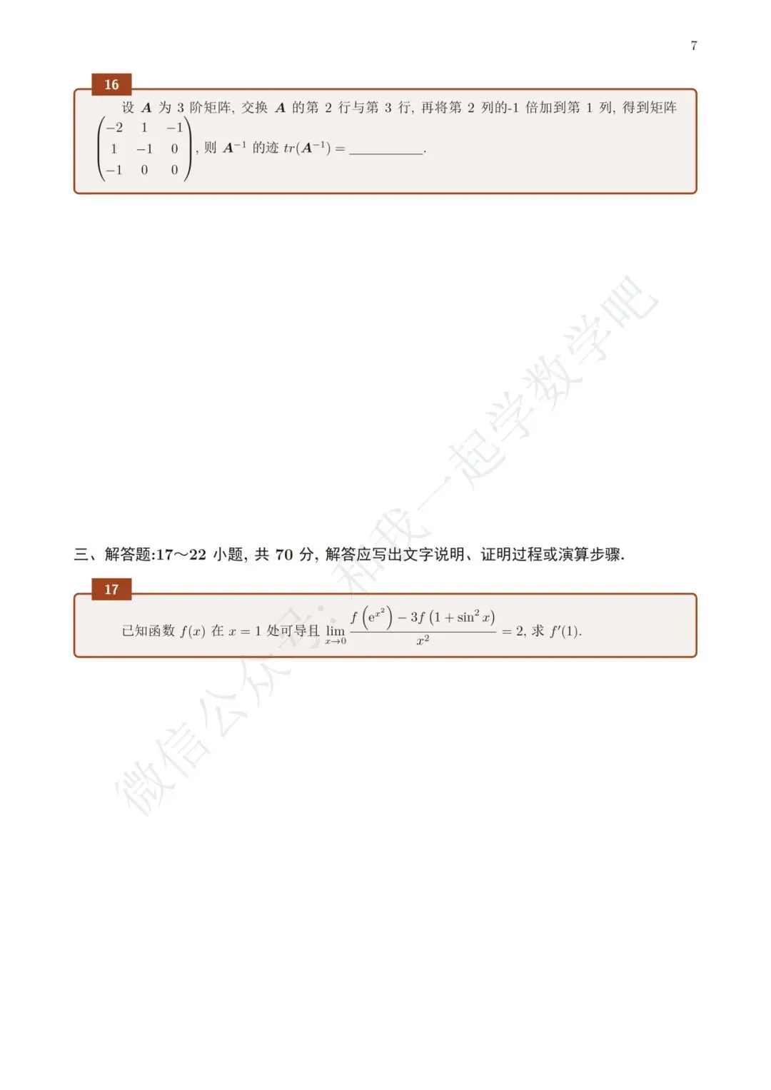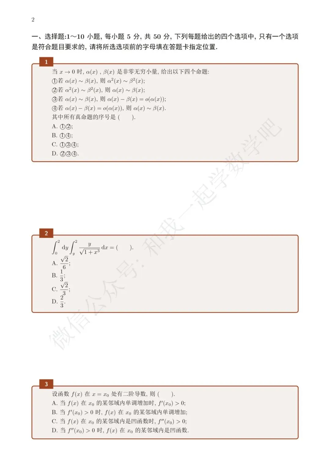 为了方便各位小伙伴们刷题,我重新排版了22年数二的真题,在每道题下面都增加了空白,方便大家写答案,记录相关知识点。