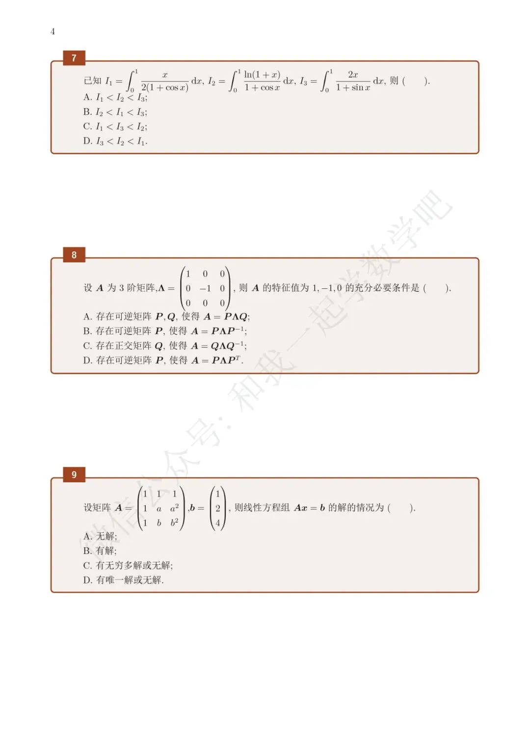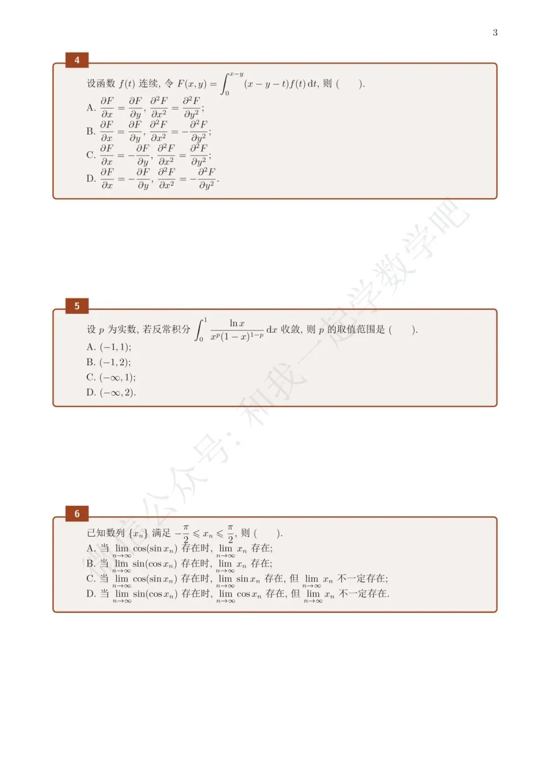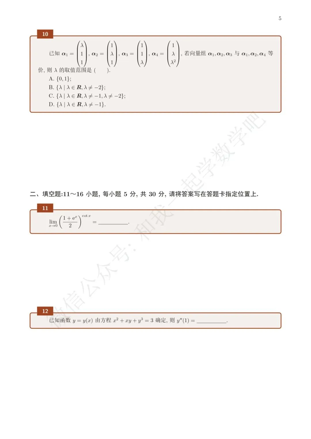 为了方便各位小伙伴们刷题,我重新排版了22年数二的真题,在每道题下面都增加了空白,方便大家写答案,记录相关知识点。