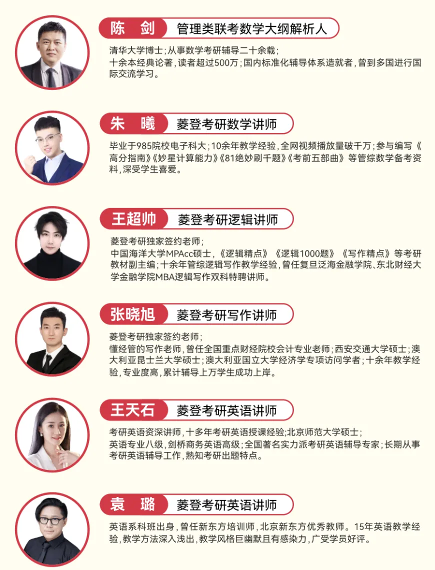为解决大家备考中的各类难题,菱登考研重磅推出27管综考研线上+线下双线程学习模式,不仅量身定制专属备考规划,更提供全科全程一站式考研辅导!