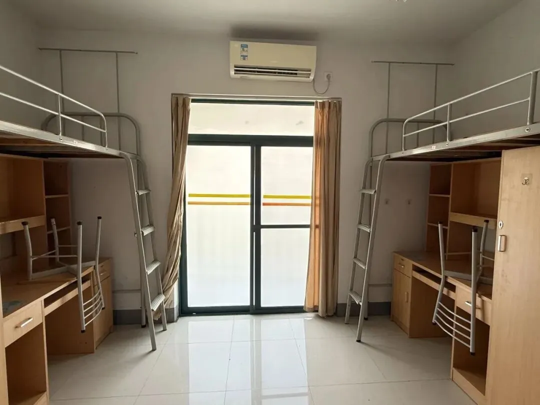 嘉善校区寝室分为两人间、三人间、四人间,上床下桌,室内均配备空调,有阳台,储物空间充足。每半层共用一个公共厕所和洗漱间,每两层设有饮用水机、吹风机和洗衣机。金海校区同样以4人间为主,空间布局合理,储物和学习区域宽敞。