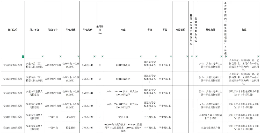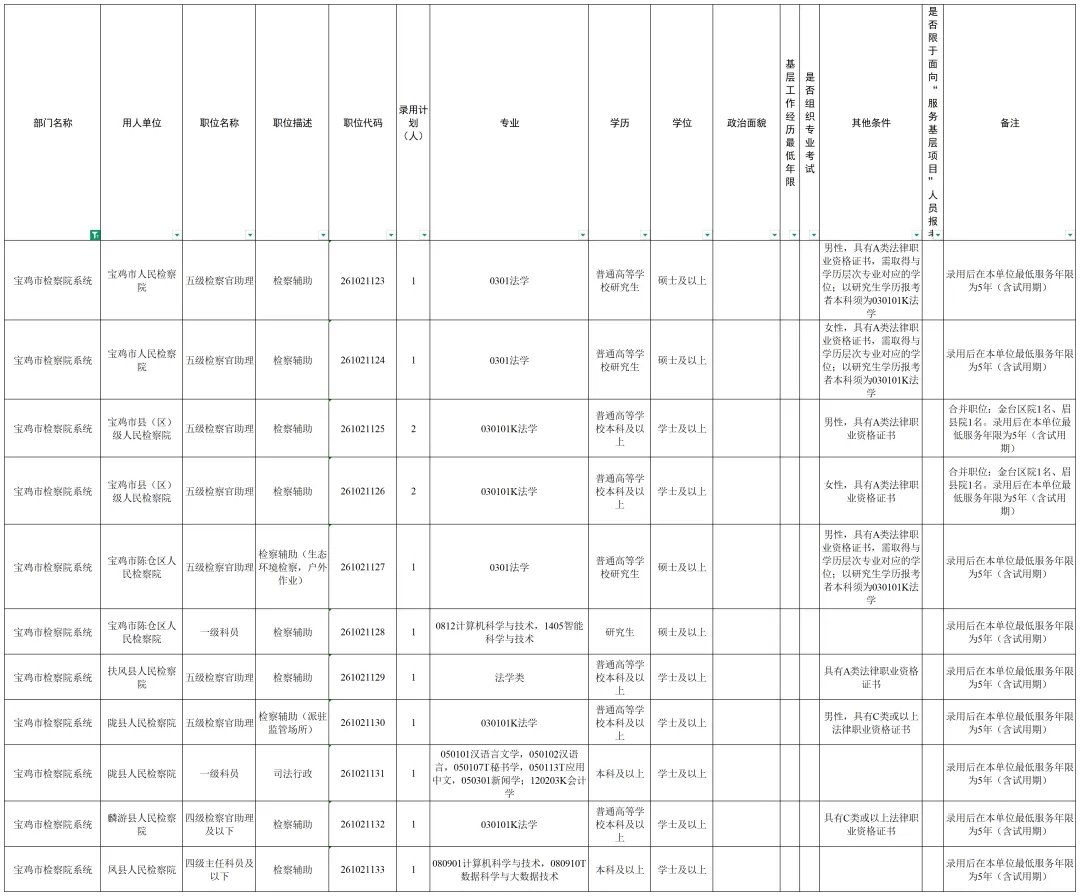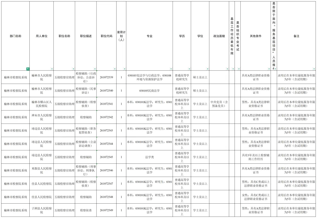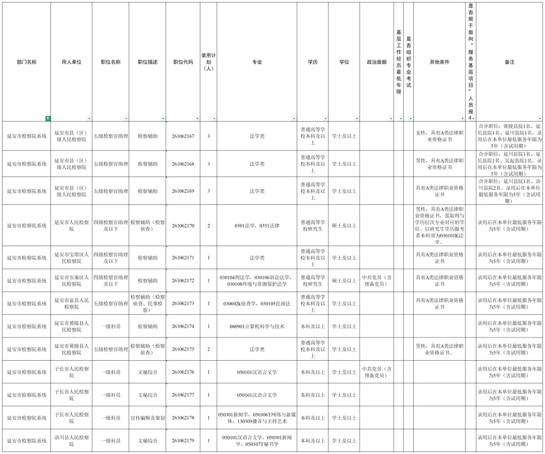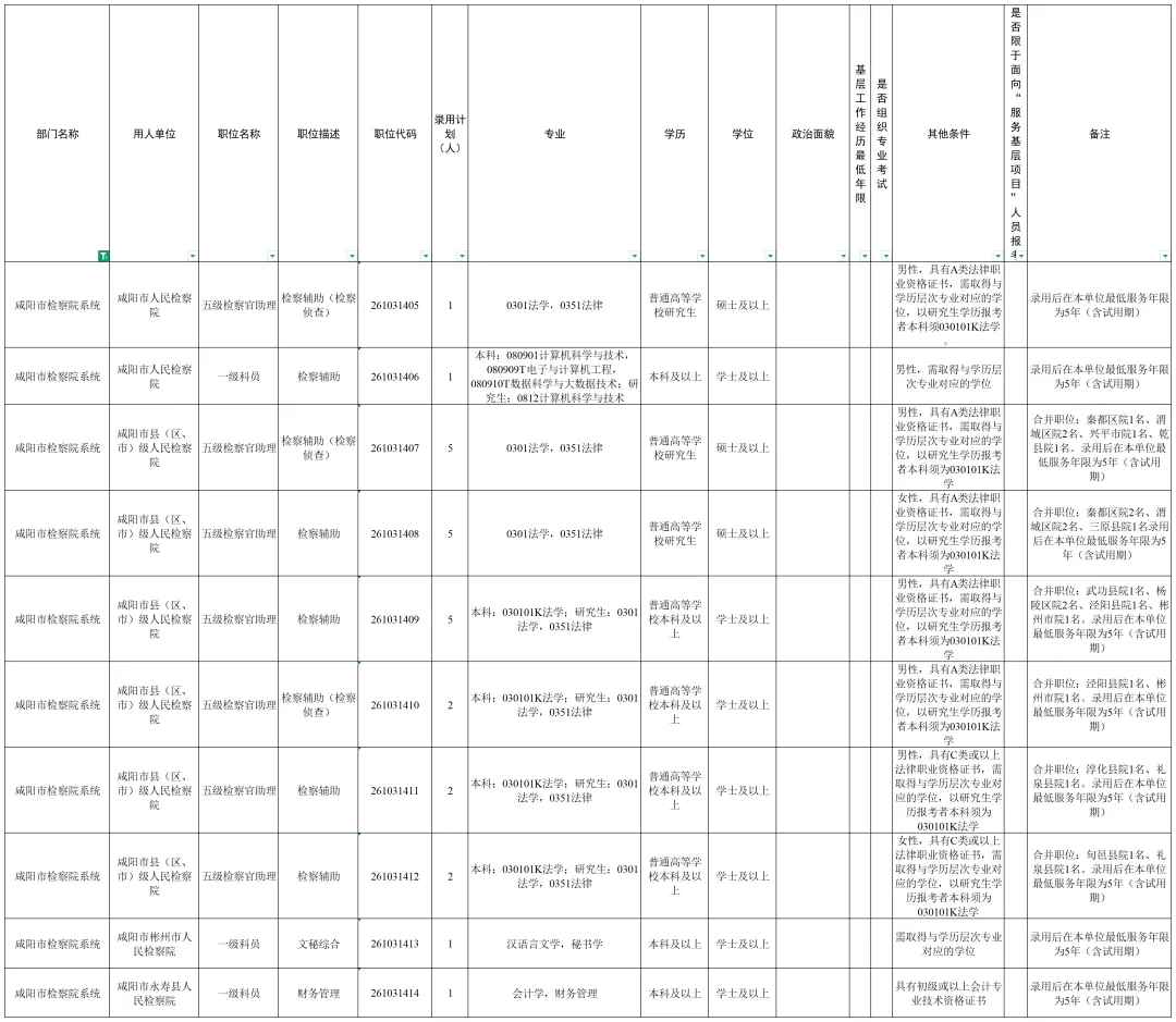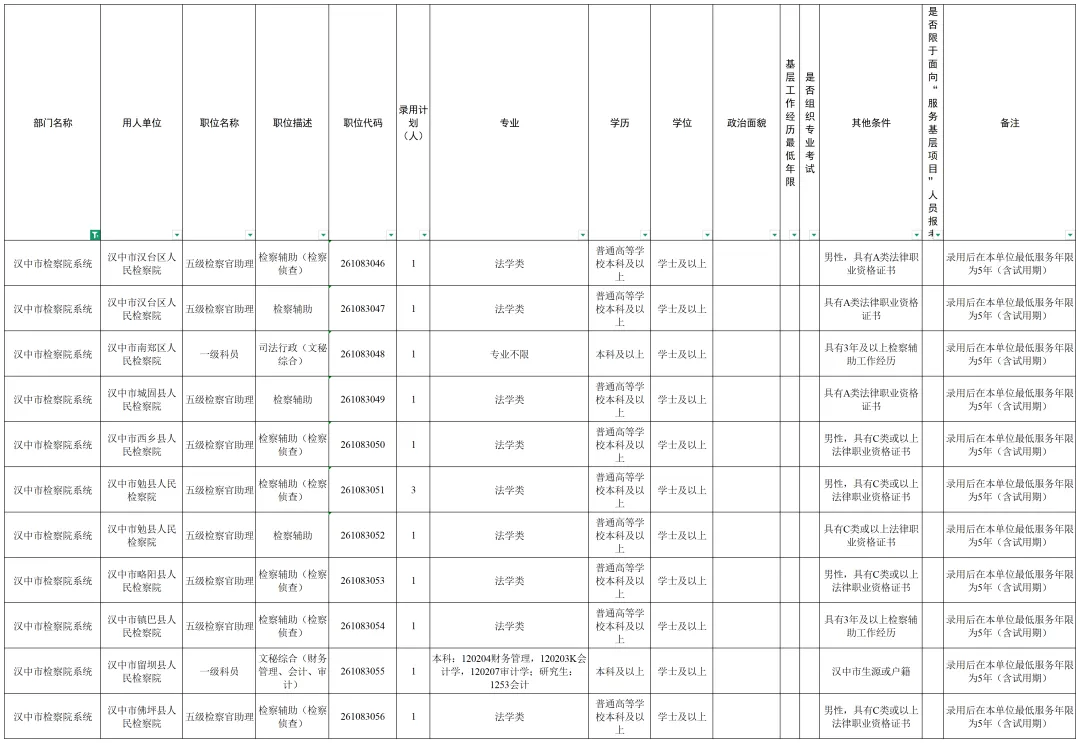 根据公务员法和《公务员录用规定》等法律法规,全省2026年统一考试录用公务员工作已全面展开,其中,陕西省检察机关拟招录170名公务员,职位包括检察官助理、司法行政、检察技术、司法警察等。