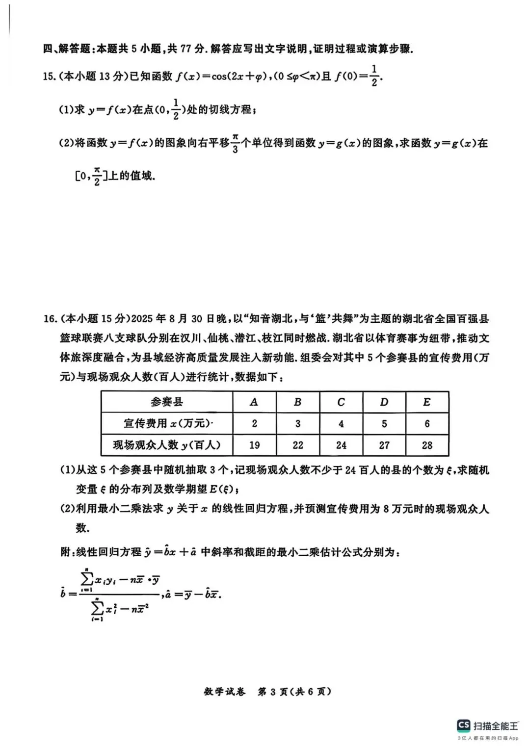 湖北省孝感市2026届高三第一次统一考试数学试卷及答案