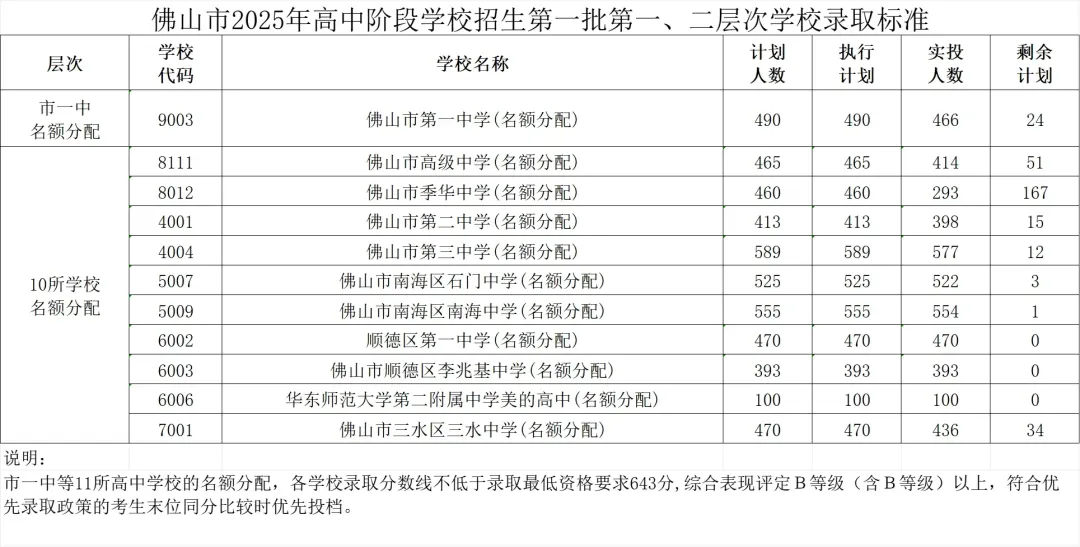 第一梯度(顶尖公办) | 佛山一中、石门中学、顺德一中(区内正取) | 678-695 | 基本持平2025年,跨区名额极少,无补录计划 |