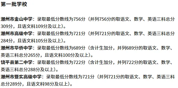 >潮州市高中、中职各学校录取分数线参考!