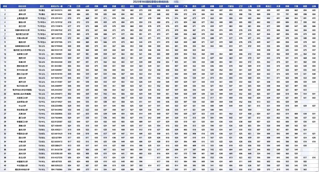 为助力 2026 届考生及家长精准定位目标院校、科学规划升学路径,嘉海基于各省考试院官方数据,整理了 2025 年江苏 985 高校理科最低录取分数线,并完成科学排名。一、排名规则及核心说明