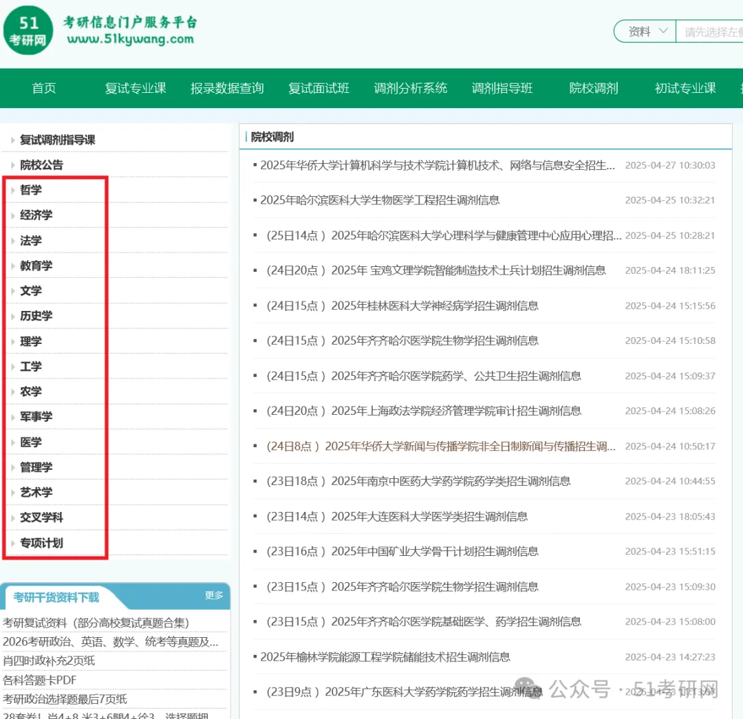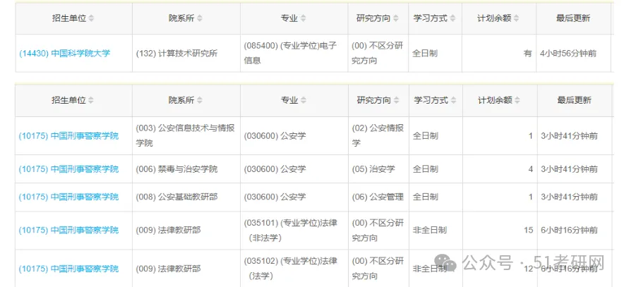 ps:51考研网已连续九年免费更新调剂信息,考生可分学科门类、可搜索专业名称查看调剂,不需要大家花1分钱,不用拼团,不限制查看次数,更棒的是,调剂阶段除了推送相关文章,还会有免费的调剂公开课、直播等等,来指导大家如何进行调剂,帮助同学们顺利上岸!