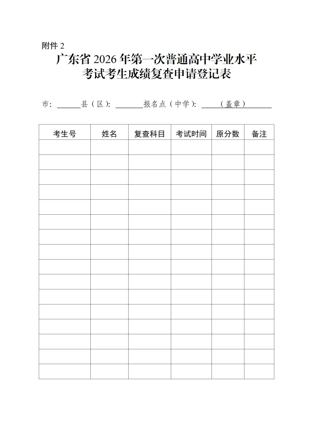 2.广东省2026年第一次普通高中学业水平考试考生成绩复查申请登记表