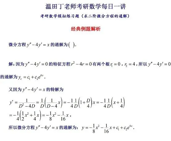>考研数学模拟练习题(求二阶微分方程的通解)
