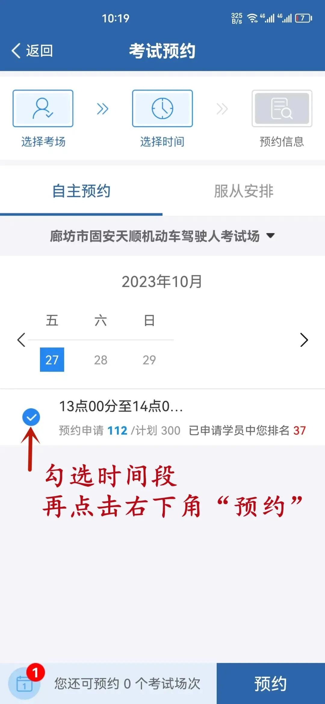 例如:27号考试,要在24号前预约;