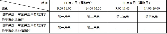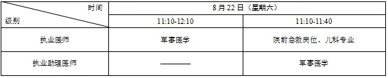 考试实行计算机化考试,军队现役人员、文职人员加试军事医学,院前急救岗位和儿科专业加试相应内容。统一考试时间如下:
