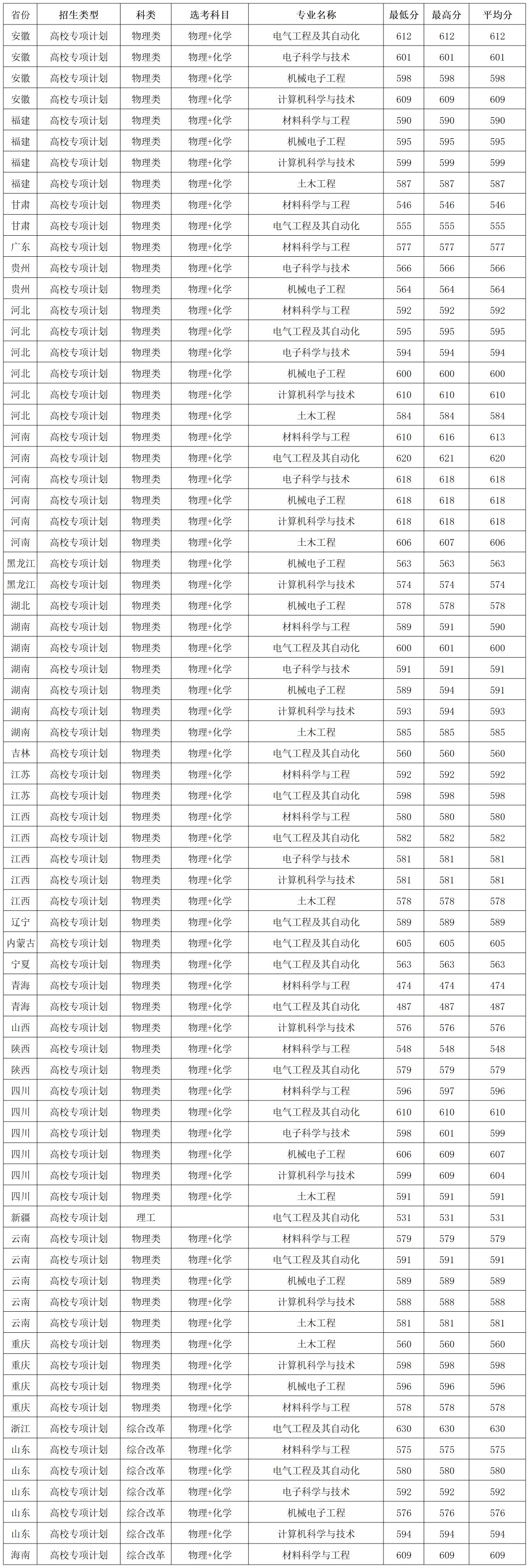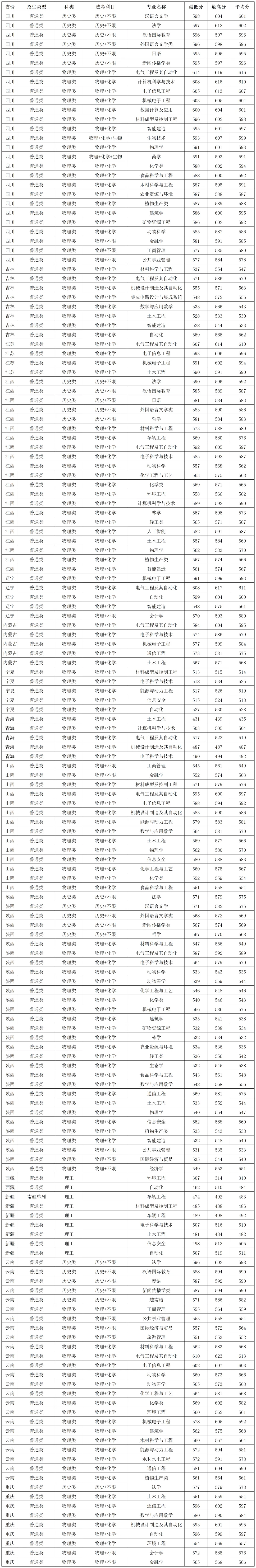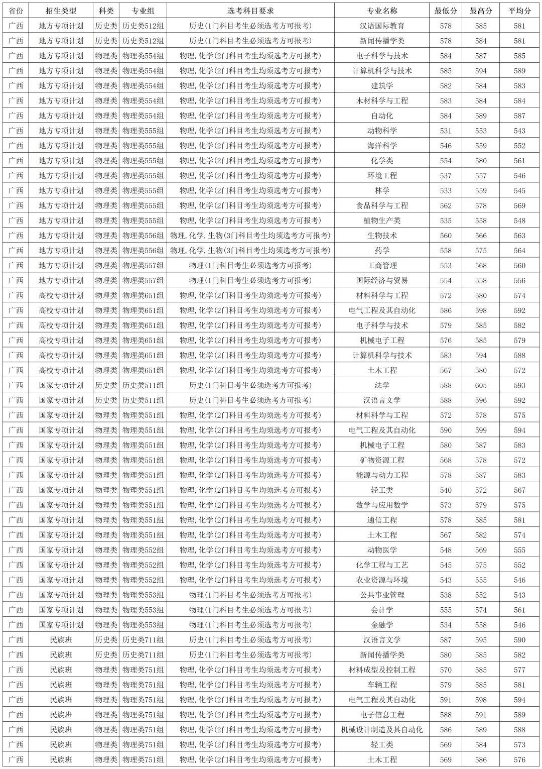 广西大学2025年在广西地方专项、国家专项、高校专项、民族班各专业录取分数线