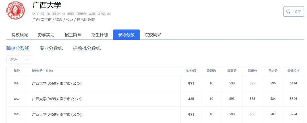 广西大学2025年录取分数线汇总,电气工程专业在各省分数线较高