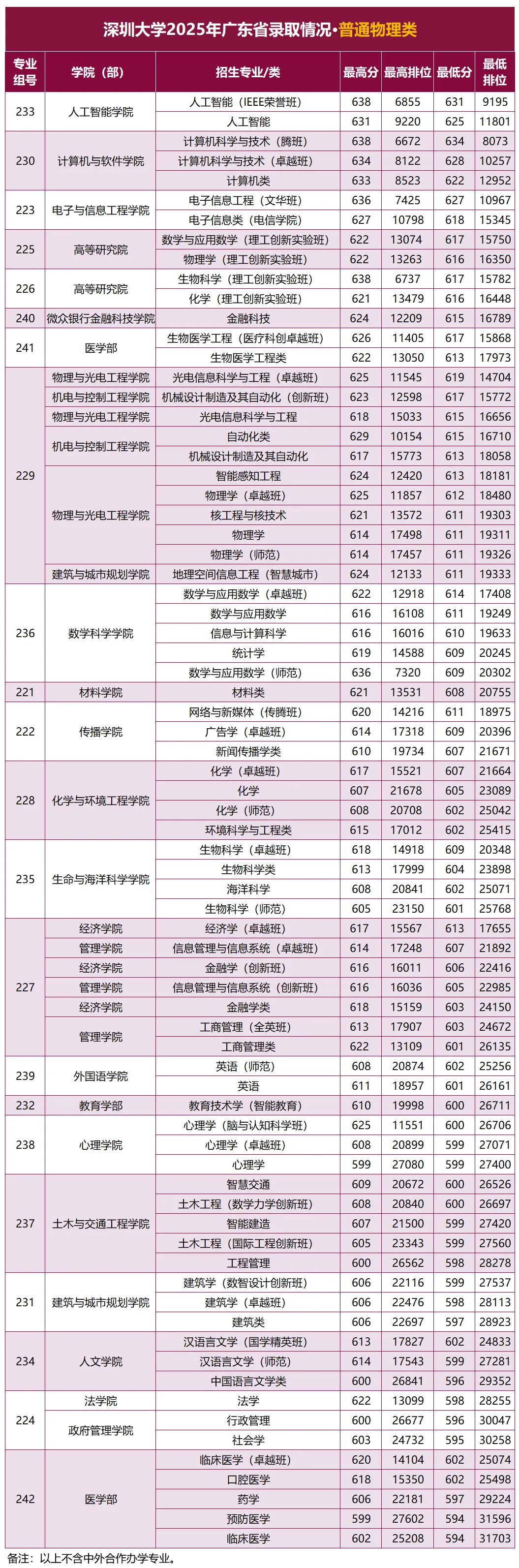 注:中外合作办学专业入校后不能转入其他非中外合作专业。