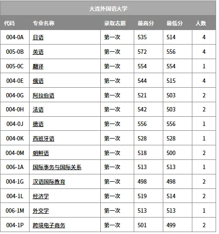 大连外国语大学前身为大连日语专科学校,始建于1964年,是在周恩来总理等党和国家领导人的关怀下,为培养国家亟需的日语翻译人才而创建;1970年学校更名为辽宁外语专科学校,1974年开办本科教育,1978年升格为大连外国语学院,1986年获批硕士学位授予权,2013年更名为大连外国语大学,同年获批服务国家特殊需求博士人才培养项目。