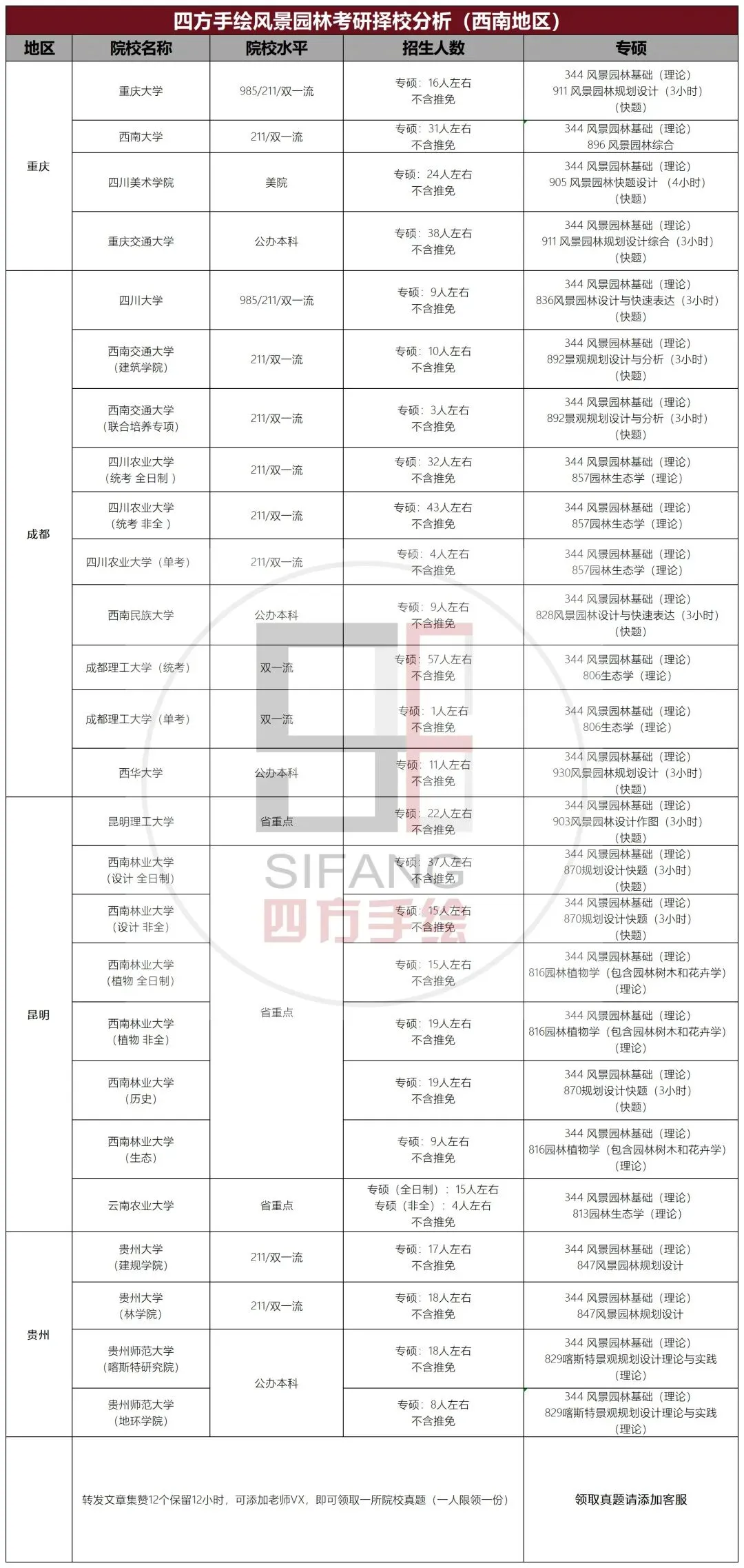 西南地区风景园林考研院校分析: