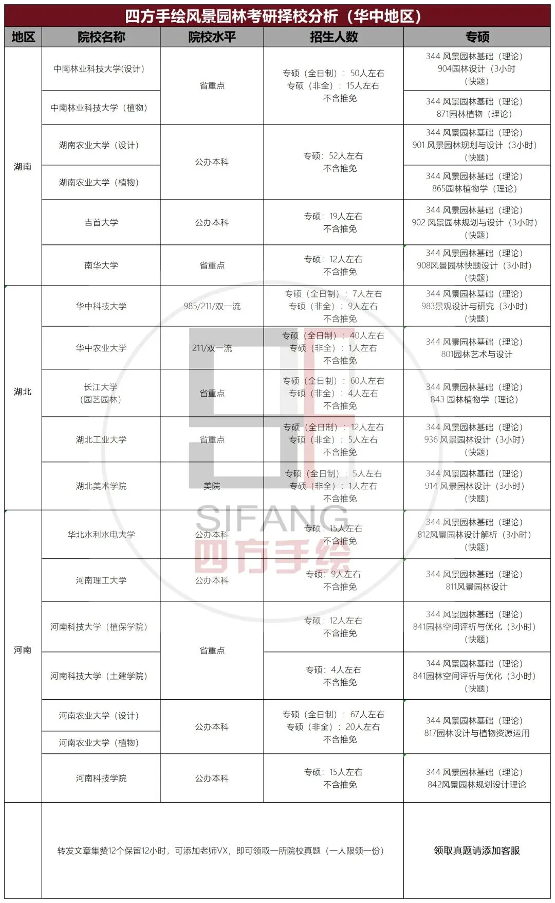 华中地区风景园林考研院校分析: