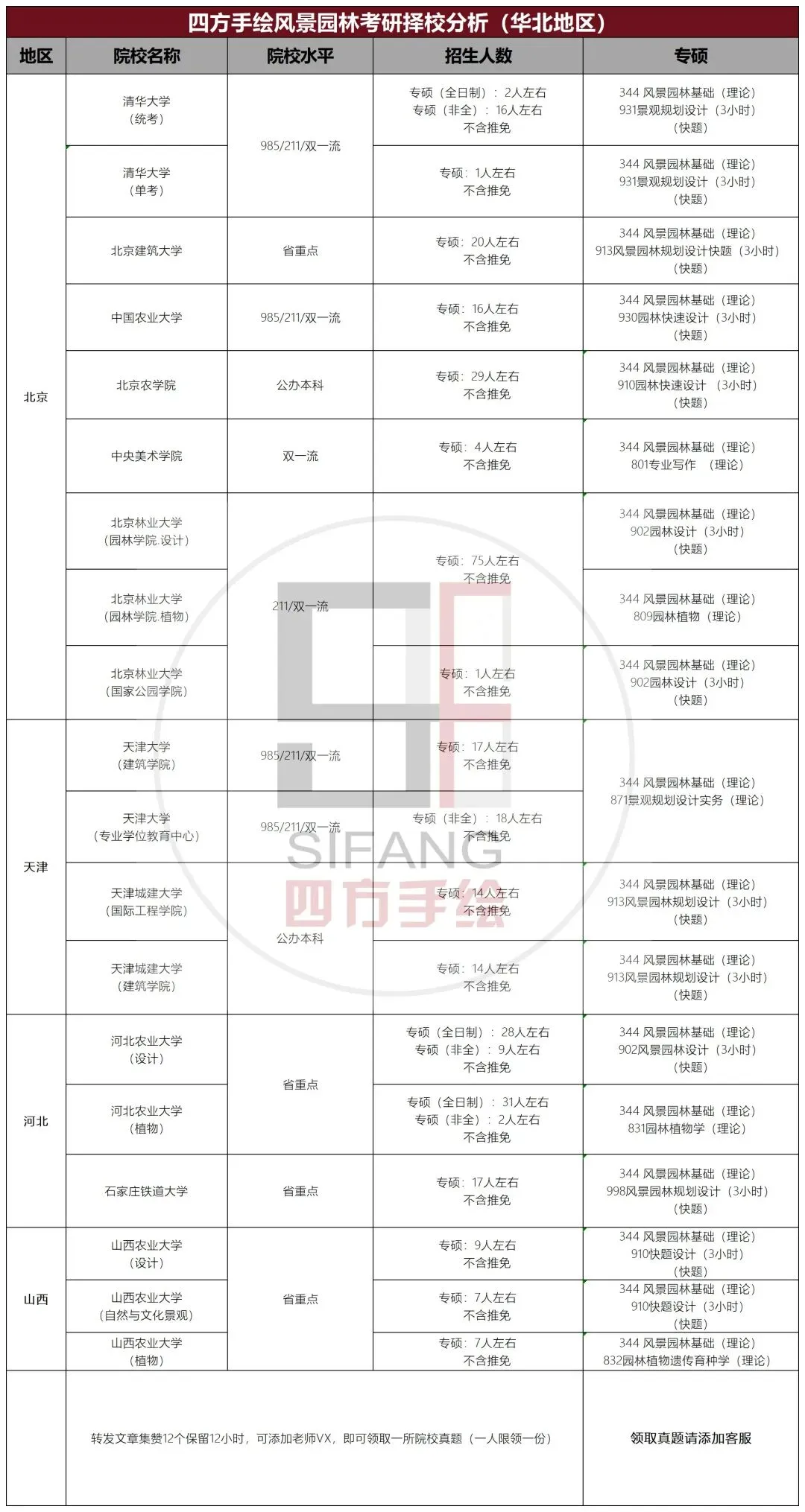 华北地区风景园林考研院校分析: