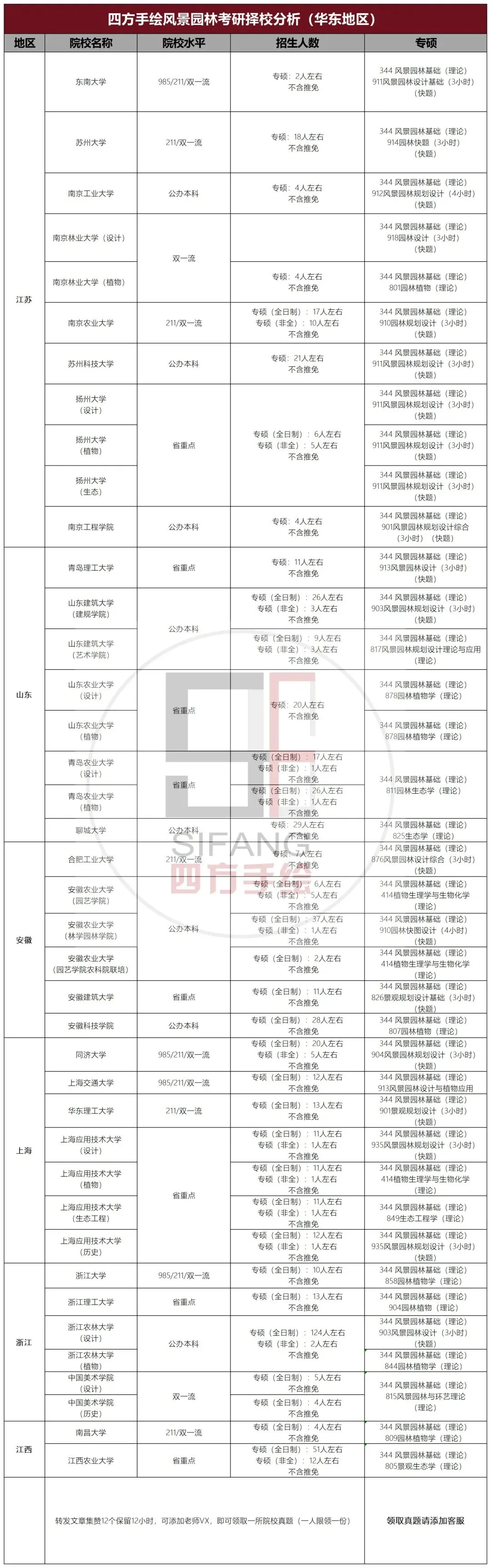 华东地区风景园林考研院校分析: