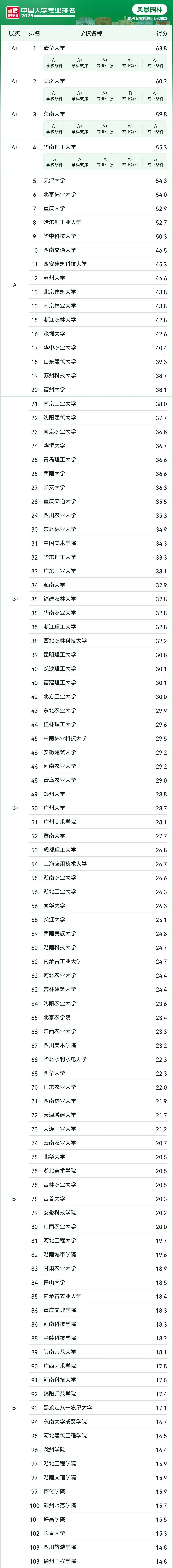 全国风景园林学科排名