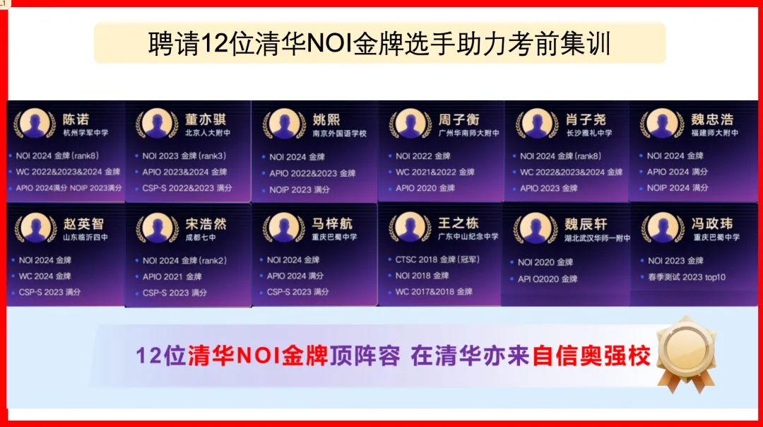 还专门聘请12位清华NOI金牌选手助力考前集训。