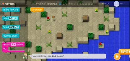 这个阶段可以让孩子从图形化编程入手,比如通过拖拽代码块让动画角色动起来、完成小游戏闯关。