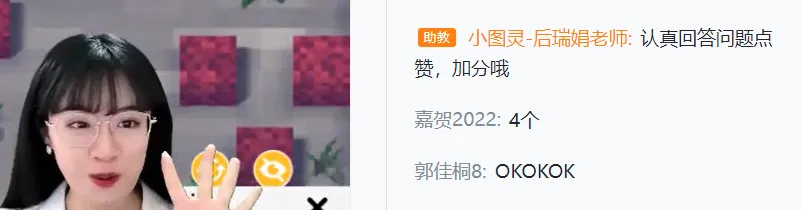 课程采用的是小班直播课,也就是有负责演示的主教老师和负责把控课堂节奏的助教,如果孩子想要回答问题,或是在课堂上遇到了不懂的地方,都可以发弹幕告诉老师,得到及时的反馈。▼