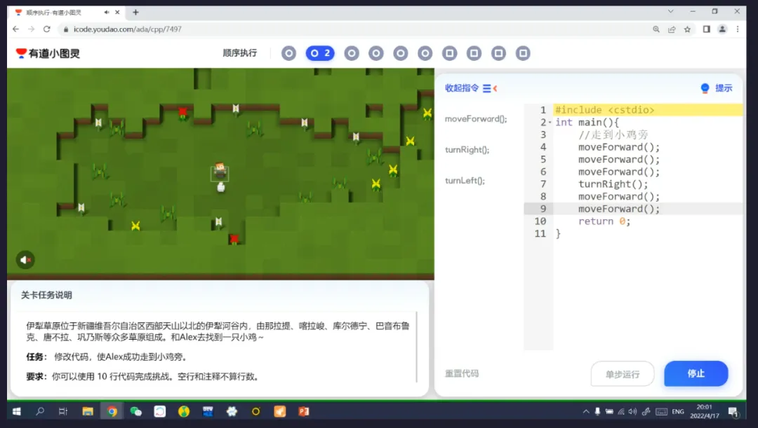 从C++课开始,就进入小班直播课的上课形式了,整体来说趣味性和节奏感都很好,总体学下来,操作完全没问题,孩子能很快跟着老师的节奏,进入到编程的世界里,解出一道又一道练习题。