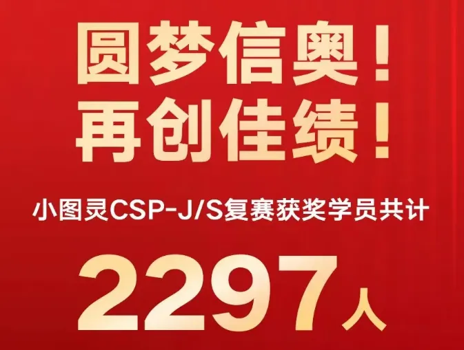 2024年小图灵CSP-J/S复赛,2297人获奖,其中入门级1402人,提高级895人,获奖率大幅提升!