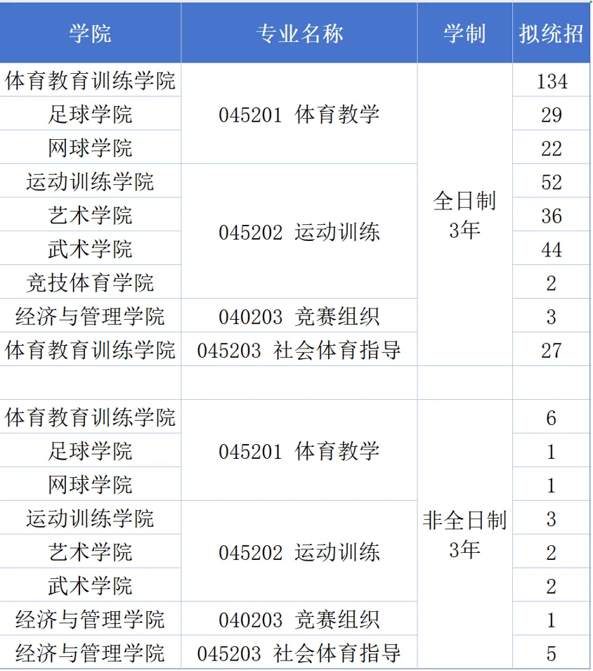 体育教育训练学、民族传统体育方向