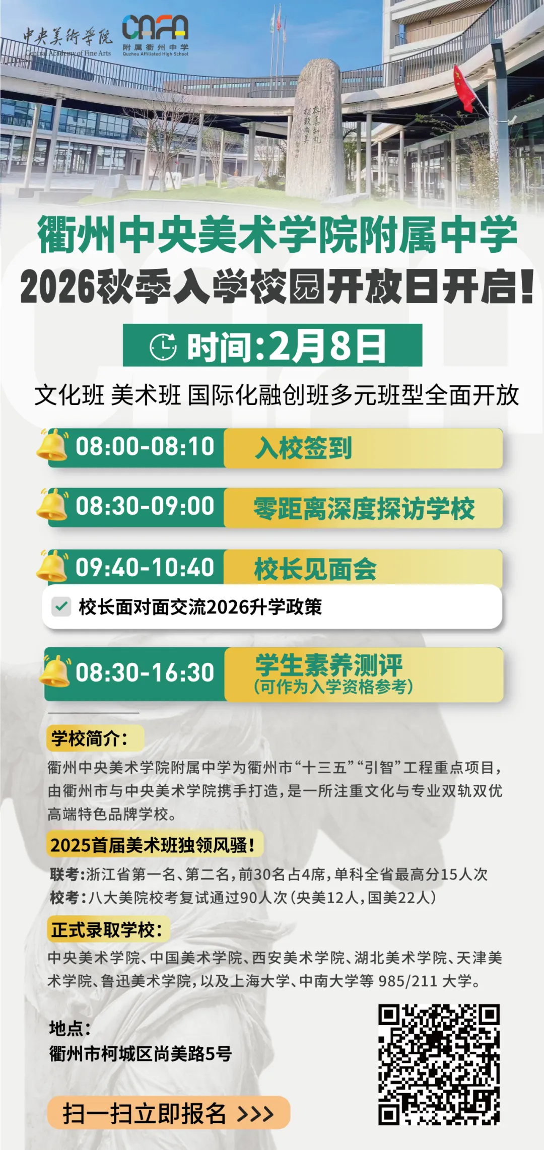 衢州中央美术学院附属中学2026年秋季入学素养测评活动将于2月8日再次启动!