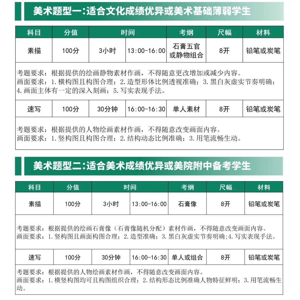 备注:(题型一、题型二任选其一)专业考试所需的画材、画具、画板(四开)以及文化考试所需的2B铅笔、橡皮等考试用具由考生自备,考试用纸由本校统一提供。